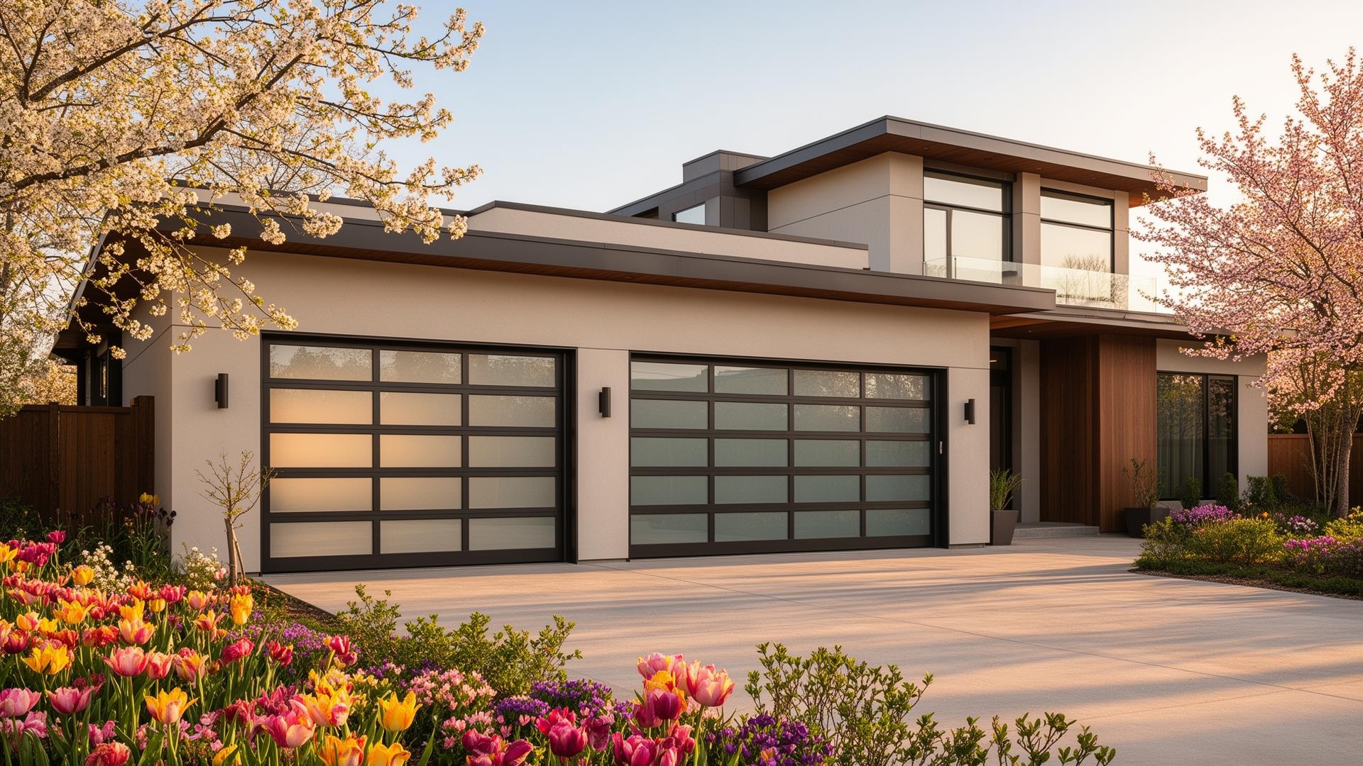 Modern contemporary home with aluminum glass panel garage doors in Morton, WA